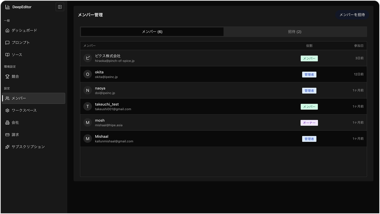 - はい。アカウント管理機能により、複数メンバーでの同時利用や権限設定が可能です。