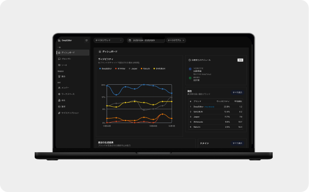 複数のLLMにおけるブランド露出・回答傾向・競合比較を一元化。